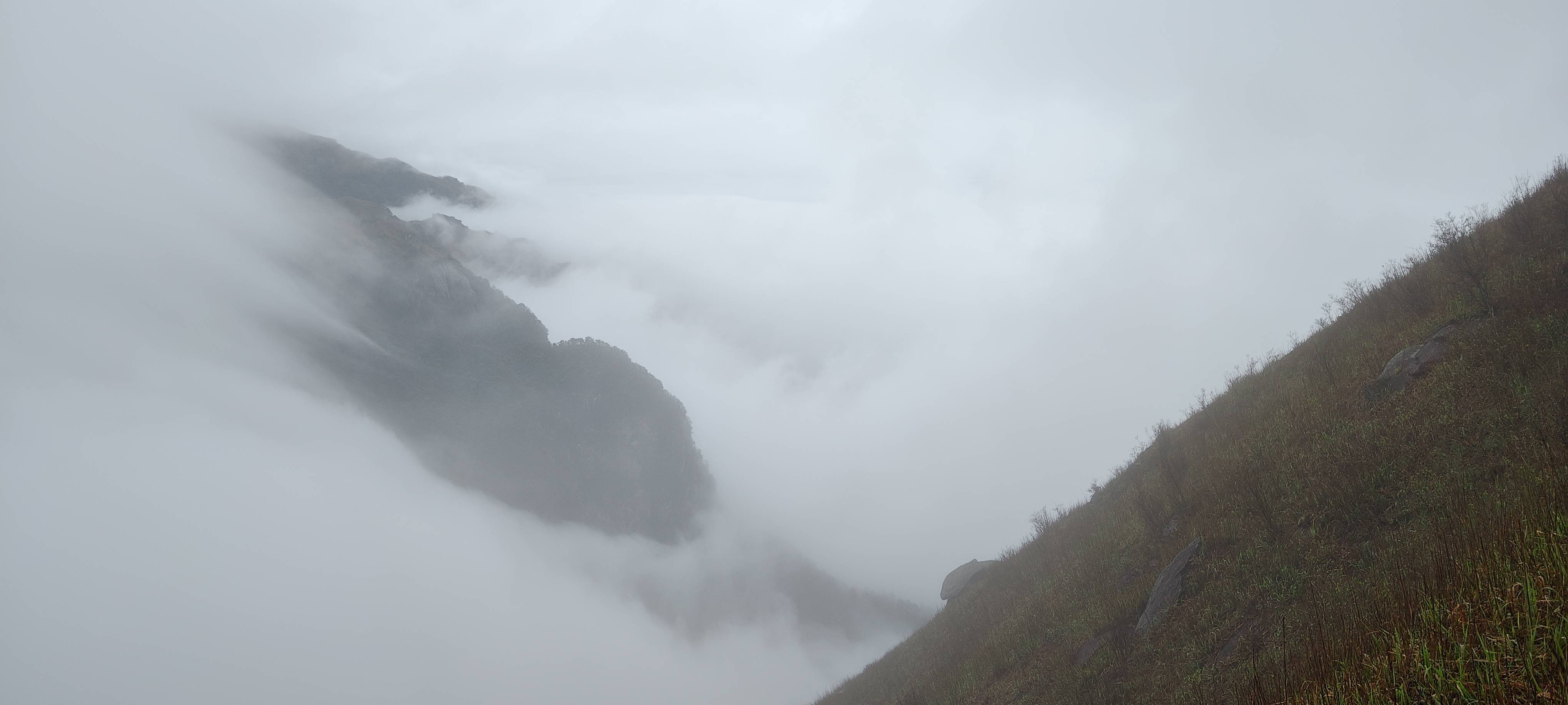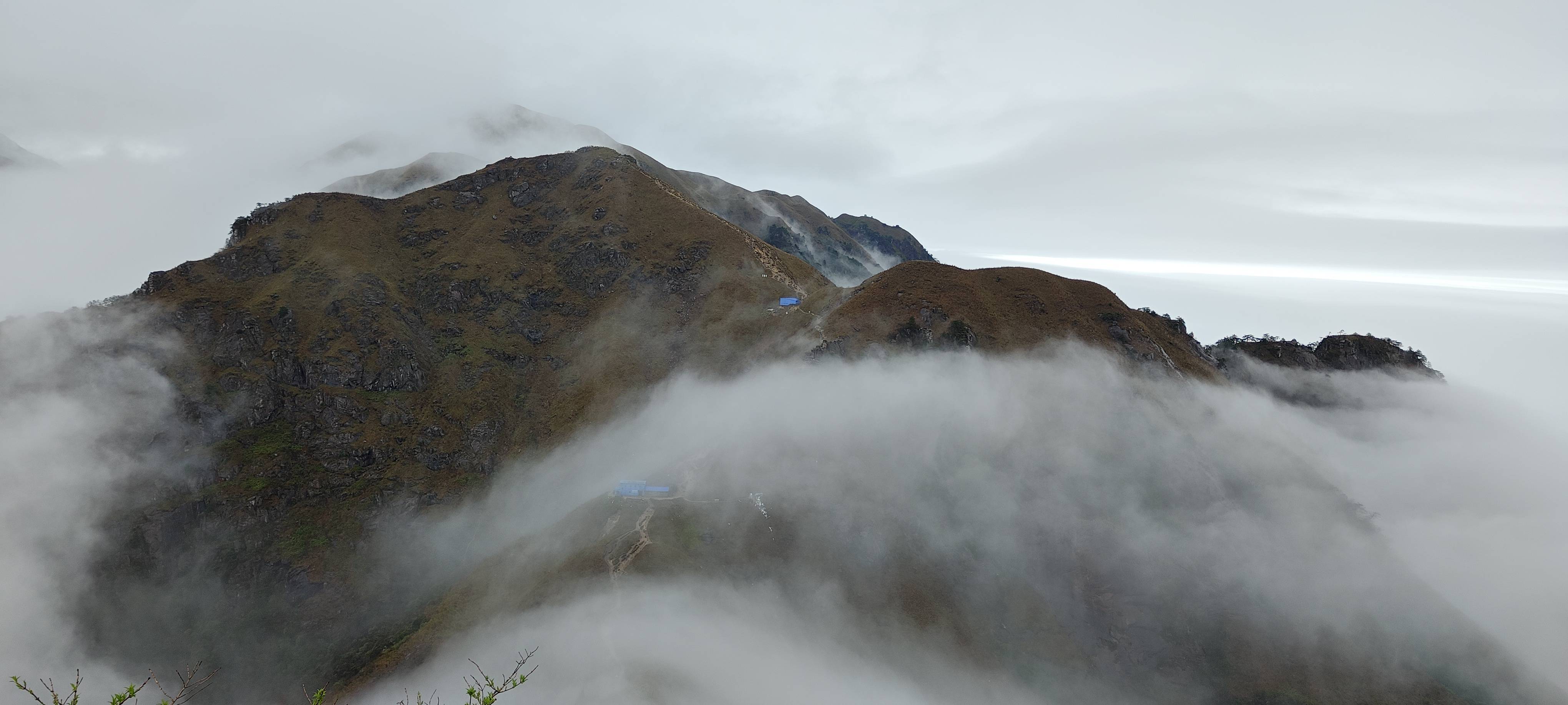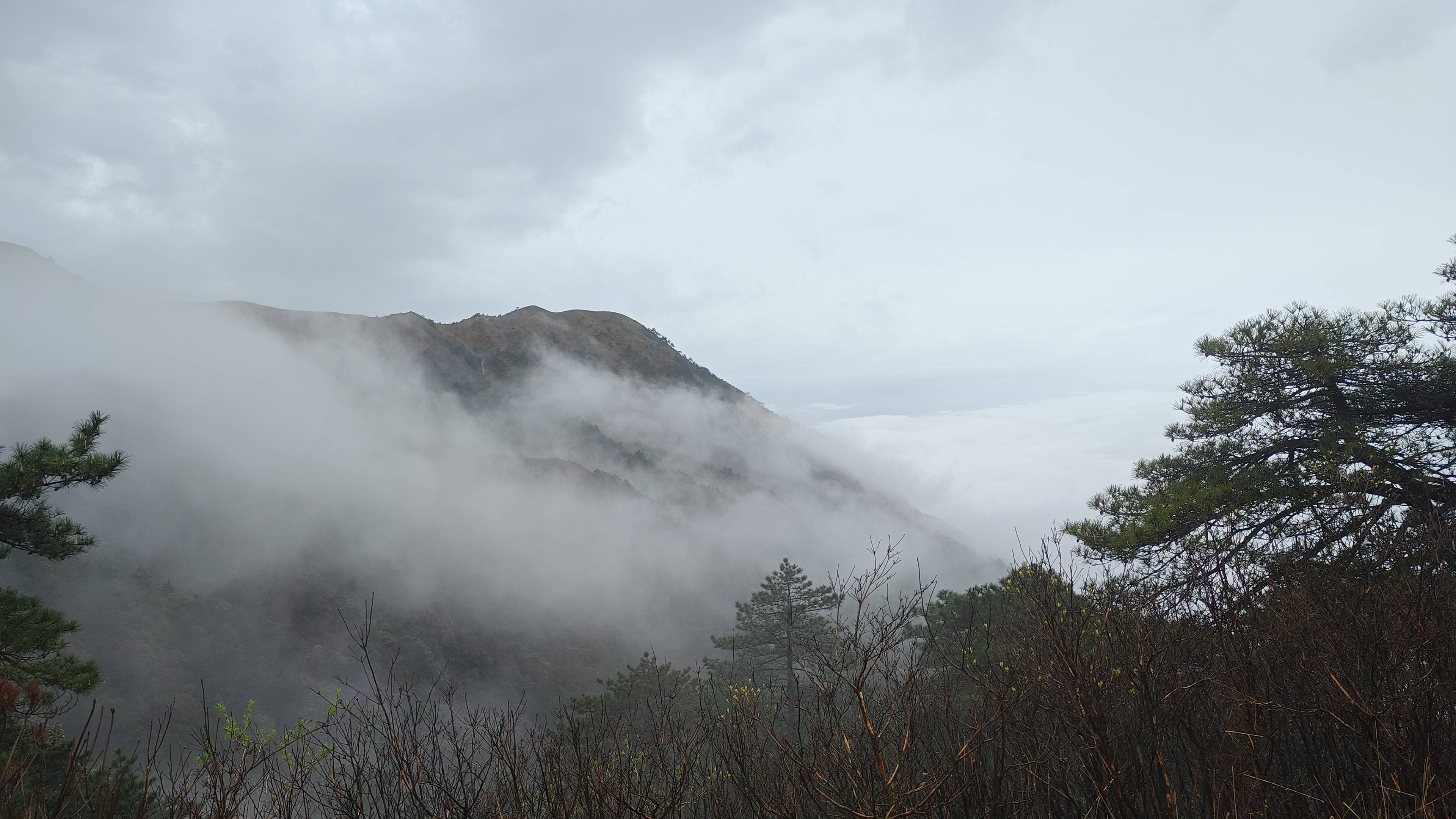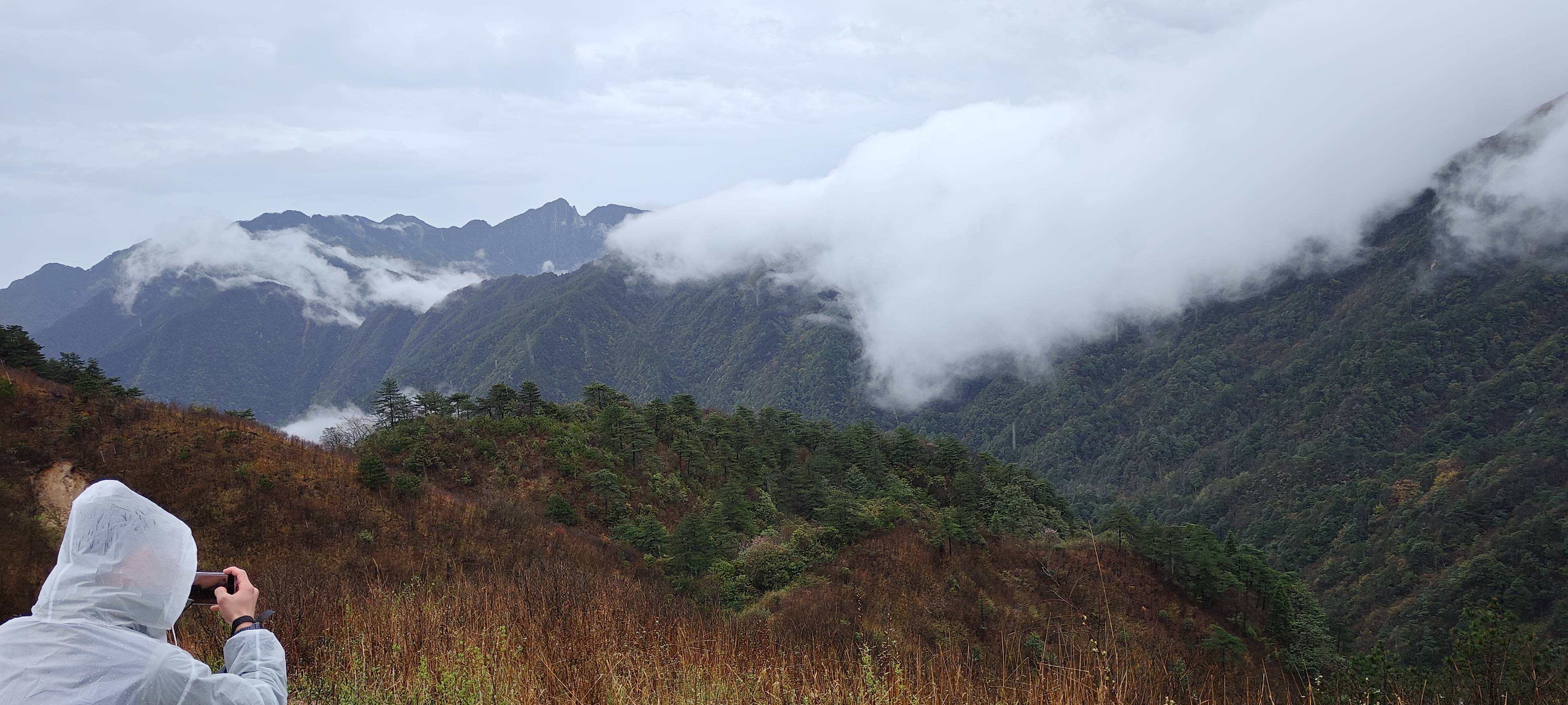 一阵风把雾吹散了 短暂看到了云海