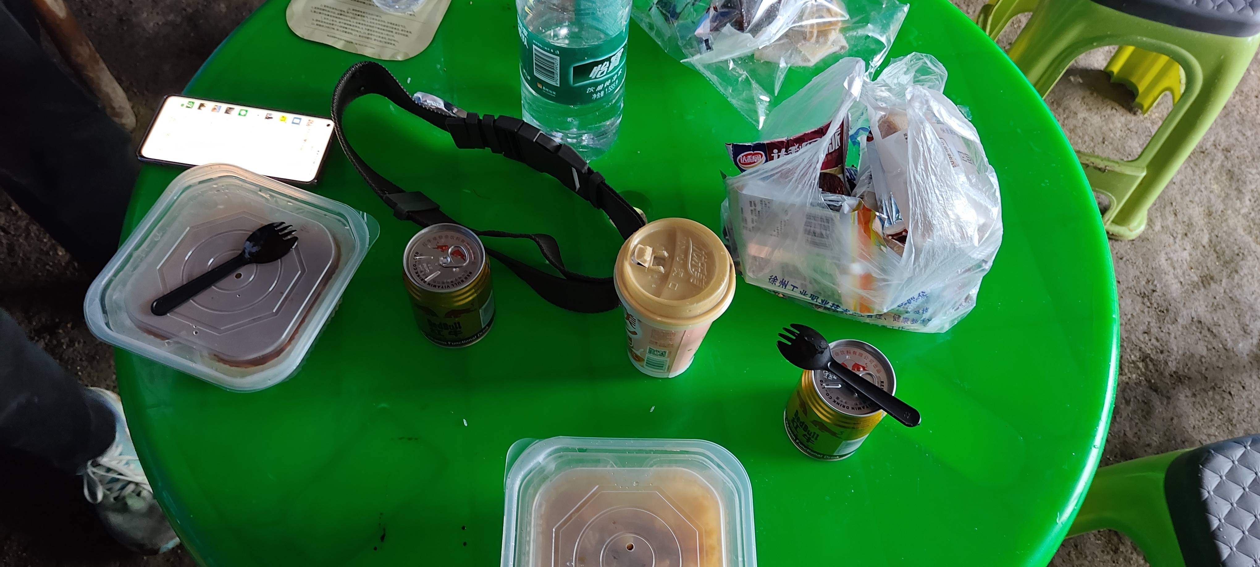 到达休息点12点34分 距离出发已经过了4小时 在这里吃了自热米饭 (报吃