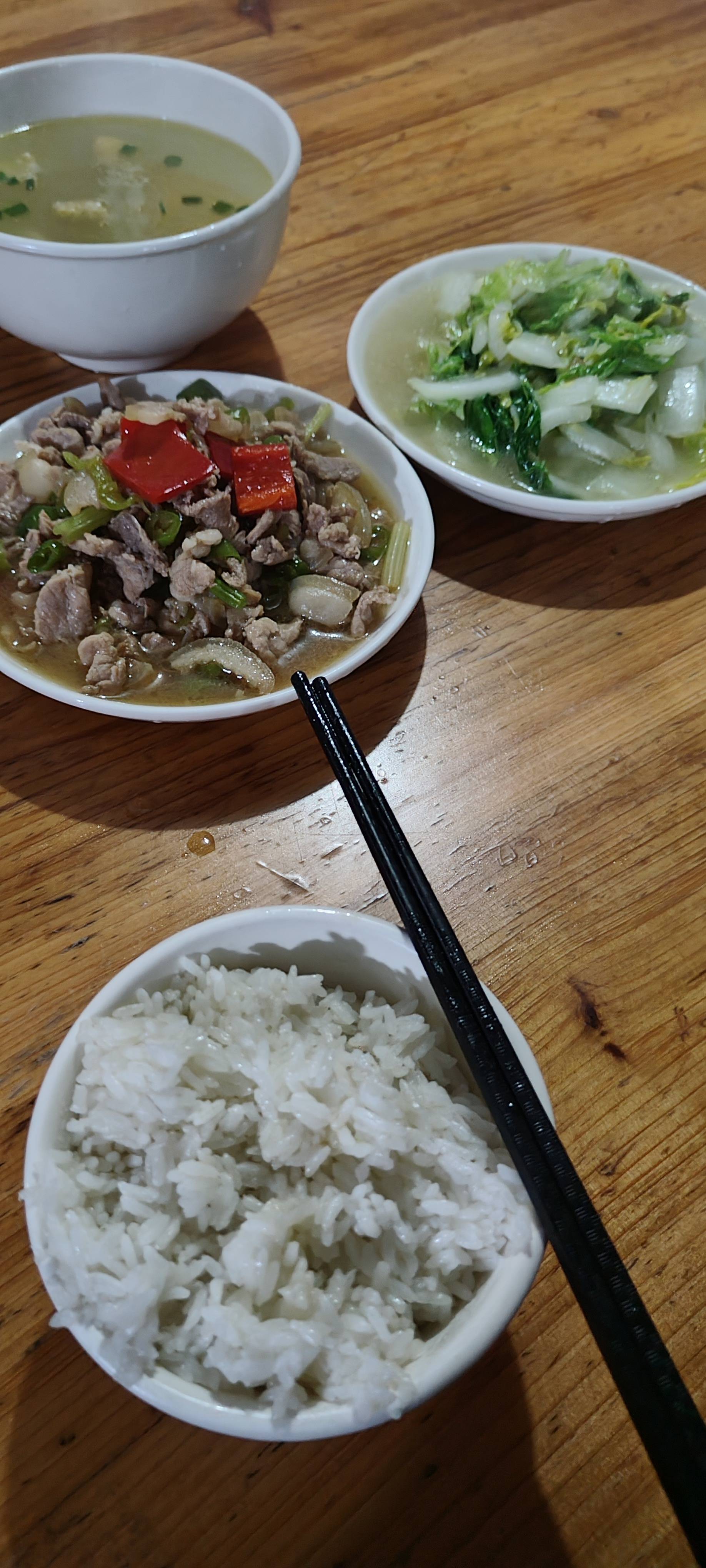 客栈条件设施比较齐全 好像是200元双人间记不太清了 提供早饭 晚饭两菜一汤 那个肉不知道是什么炒的超级好吃