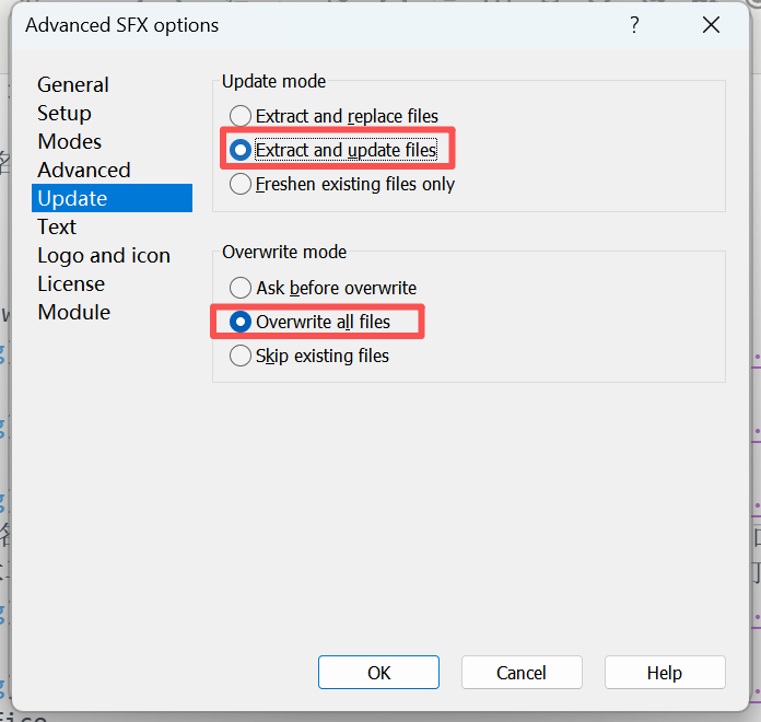 3. 配置自解压选项